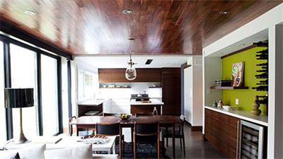 空間里很多原木,墻面主色調也選擇與之非常相配的白色,白色墻面搭配玻璃門,在通透的光照下,空間更為明亮開闊。如果整個空間也就是這樣的布置,也穩妥平常但不夠出彩,餐區位置屋主花了一點小心思,用蘋果綠來做點綴,作為主題背景墻突出,整個餐區因此看起來更加明艷可口,讓人食欲大增。再加上配上孫氏照明的餐廳吊燈,燈光的溫和恰到好處的渲染,那效果會更好。